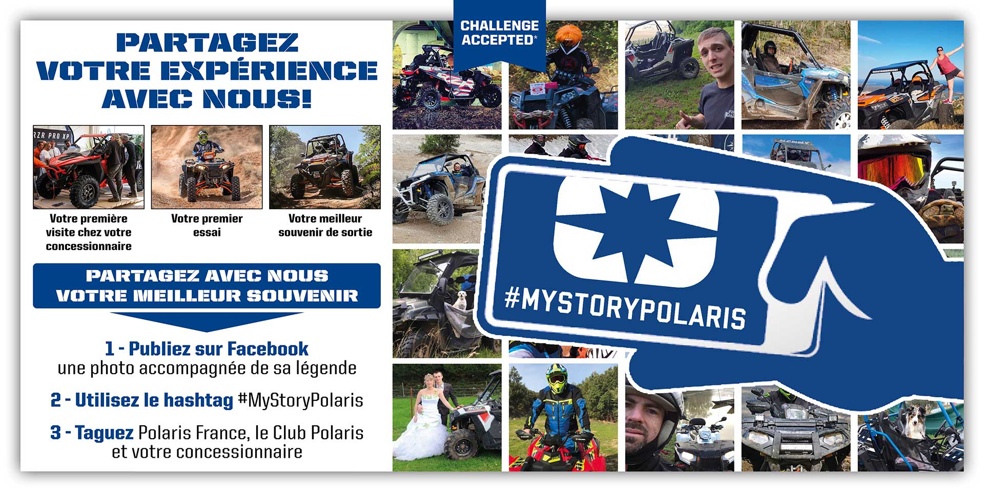 Afin de continuer à partager nos émotions au volant d’un véhicule Polaris, nous vous proposons un jeu concours mensuel sur nos réseaux sociaux (Facebook et Instagram), exclusivement réservé aux membres du Club Polaris